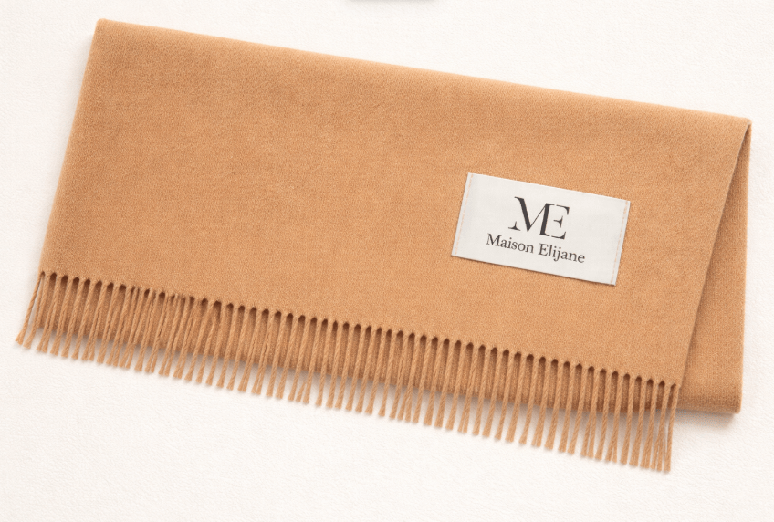 L’écharpe SOUFFLE est dotée d’une étiquette Maison Elijane cousue discrètement, signature élégante de la marque. Ce détail subtil souligne l’identité de la maison tout en conservant l’esthétique minimaliste de la pièce.