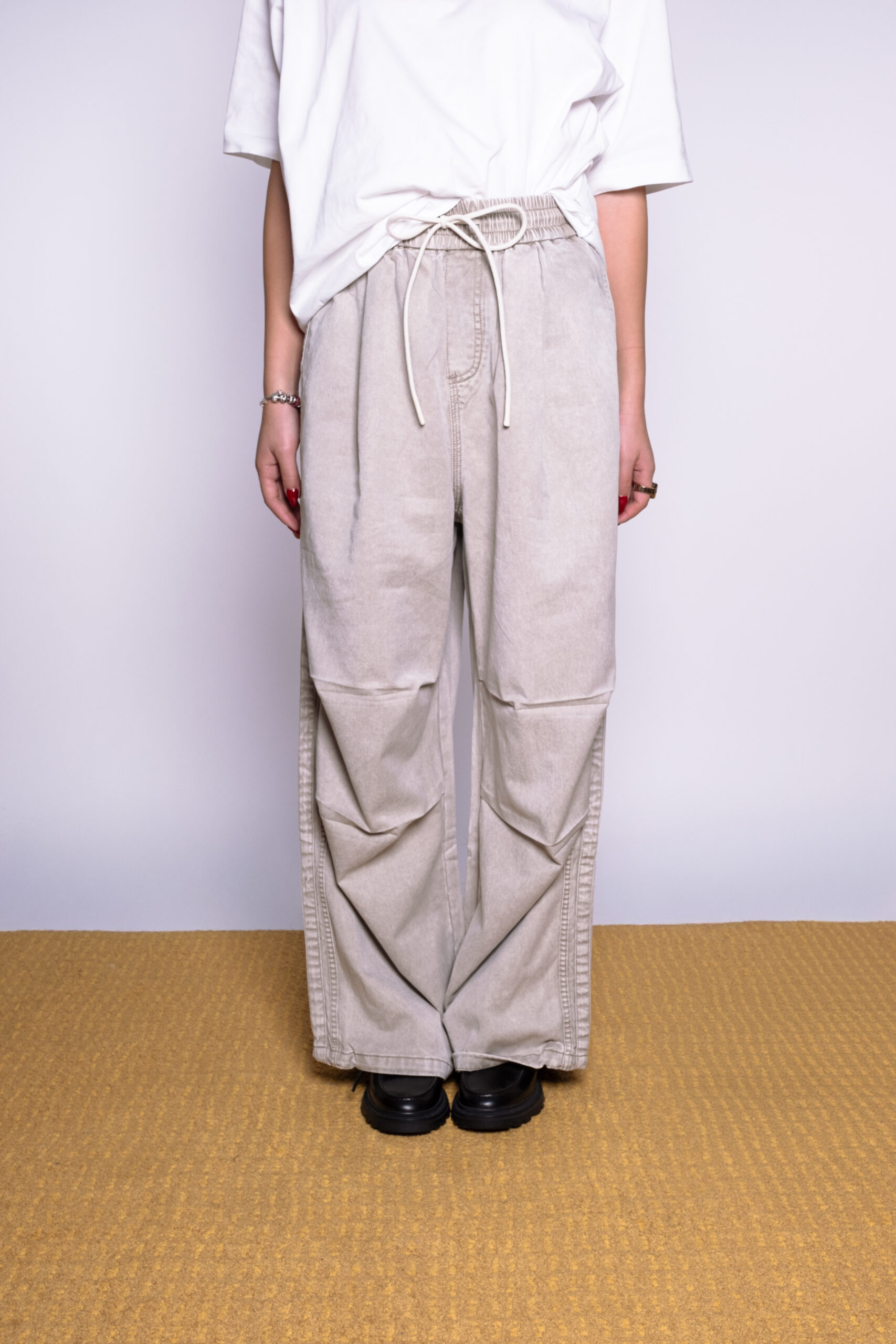 La coupe du pantalon TRACE est volontairement très oversize afin de créer une silhouette ample et moderne. Ce volume généreux apporte une dimension décontractée tout en conservant une certaine élégance.