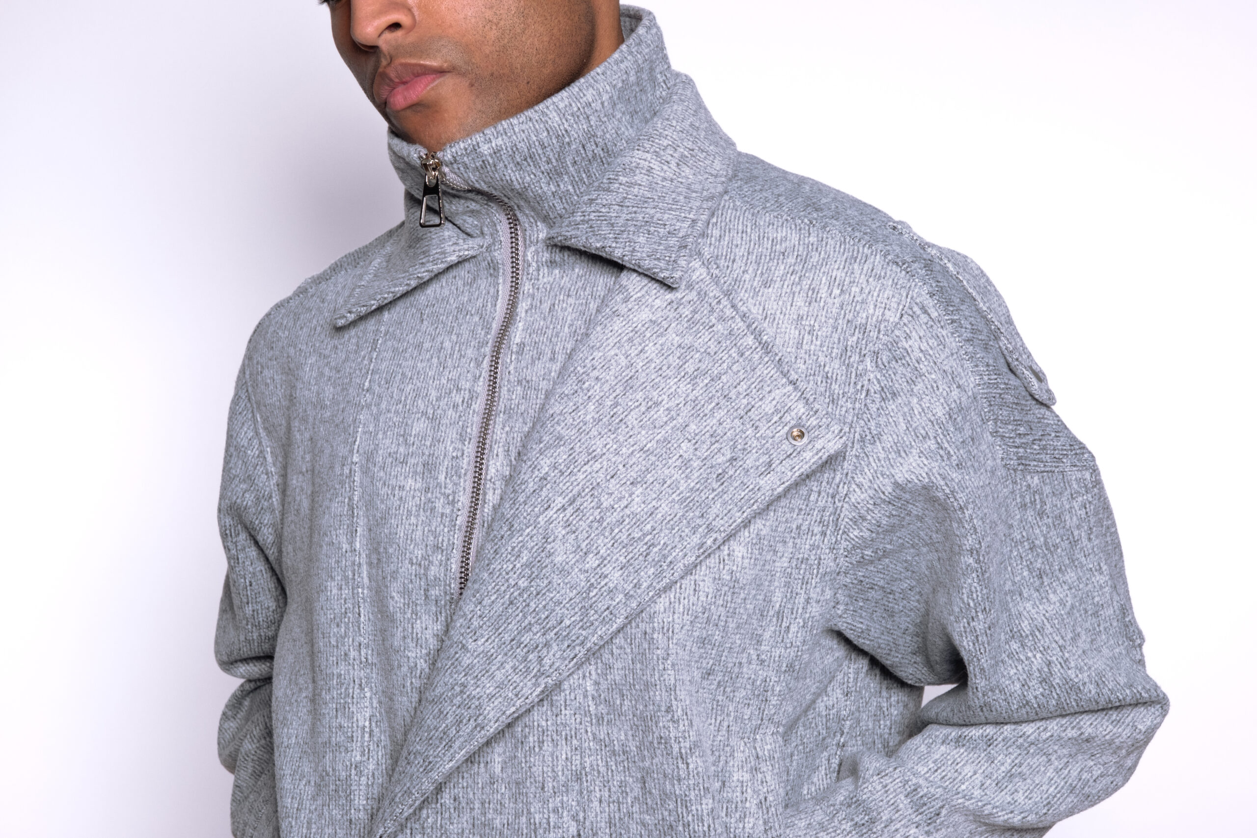 La veste BRUME se distingue par sa coupe ample et son col large structuré qui enveloppe naturellement la silhouette. Son design minimaliste et sa texture chinée apportent une allure contemporaine, idéale pour composer un vestiaire moderne et intemporel. Dotée d’une fermeture zippée et d’un système d’ajustement par sangles à la taille, elle s’adapte facilement à différents styles et morphologies.